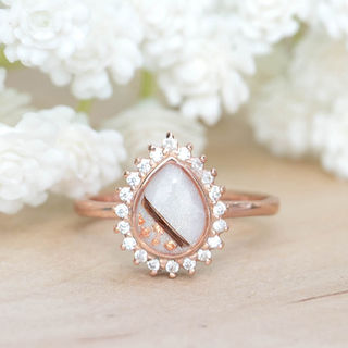 ![]() Lavish Pear RingThis stunning ring features a 6x8mm pear-shaped blank bezel set in solid 925 sterling silver, complemented by a sparkling zircon-adorned shank. Perfect for adding your own gemstone, this elegant piece combines classic design with a touch of brilliance. Shimmering with love and life, this ring is a beautiful addition to any collection. Pictured: Breastmilk, Shimmer, Opal Flakes | ![]() Goddess RingA timeless treasure to honor your breastfeeding journey. This elegant 4mm band features five delicate settings to preserve your precious breastmilk — each one a symbol of love, dedication, and the bond you share with your little one. This rose gold colored ring showcases shimmering 5mm and 4mm round bezels with sparkling zircon accents, creating a piece that’s as meaningful as it is beautiful. Pictured: Breastmilk and Shimmer |